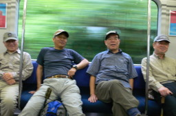 7:07 奥武蔵を目指して走る電車の男4名 |