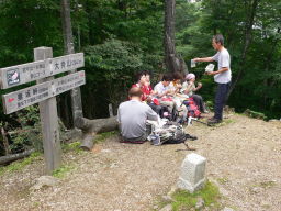| 苦闘すること3時間以上、 ポッコリ大持山頂上に出た。 空腹に耐えた後の食事は最高! |