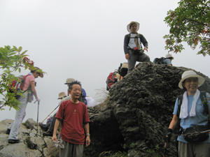 「オキの耳」で 2班 集合写真 霧のなかで・・・ |