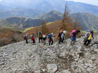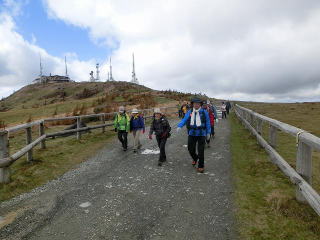 | 桜清水キャンプ場9:45→王ヶ鼻11:25/12:10→王ヶ頭ホテル12:35/12:50→美しの塔13:25→山本小屋13:45→牛伏山14:00→美ヶ原美術館14:20 台風27号の影響で一週間前から天気予報がクルクル変わる。曇り時々晴れに始まり、雨のち曇り、曇り、曇り時々晴れ、晴れ時々曇りに。最悪期は降水確率50%になり悩んでいたが台風27号、28号とも前日に関東地方を通過することが確定したので実施を決定。 当日朝kinyaさんから欠席連絡を受け、2班はL、SLを除けば女性ばかりのグループ登山となった。 今日は8000人が走る諏訪湖マラソンの実施日と前日に知り、帰りの温泉立ち寄りは急遽中止。河口湖マラソンのトラウマと秋の行楽日和の渋滞を考え早く帰ることにした。 登山口は桜清水オートキャンプ場から登る八丁ダルミコース。ここから王ヶ鼻まで、始めは広葉樹を主体とした自然林、次にカラマツ林、中腹から樹林が切れ松本盆地と北アルプスを眺めながら登る展望の良い登山道である。 10mを越える強風と零下に近い低気温の予報であったが、その気配は全くなく気持ちの良い秋の登山となった。北アルプスは雲がかかっていて残念だったが、富士が見えてマアマアだったと思う。 王ヶ鼻から王ヶ頭、山本小屋は遊歩道を歩いたが既に牧場には牛は一頭もいなかった。王ヶ頭ホテルに泊り、この牧場をスノーシューで歩いてみたいという話で盛り上がっていた。冬はホテルから松本駅まで送迎車が出ている。 山本小屋から牛伏山を通り美術館に。遊歩道のコースは春夏には高山植物が咲き、放牧の牛も見られ、家族やデートで来れば気持ち良いがハイキングクラブで来るには物足りない所。でもたまにはこのような企画も良いのではと自賛している。 山の紅葉はイマイチだったが帰りのビーナスラインで見事な紅葉を車窓から眺められた。 参加した皆さんご苦労様でした。 ・松本平と北アルプスを眺めながら登る。北アルプスは雲がかかっていた。 ・王ヶ鼻で集合写真。 ・美ヶ原の遊歩道を歩く。 |