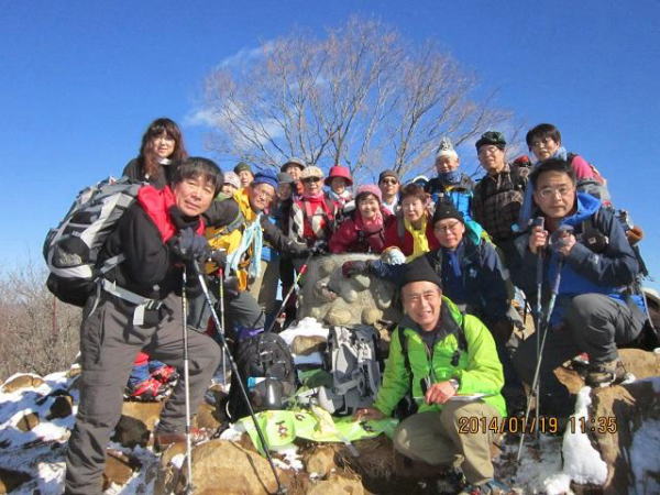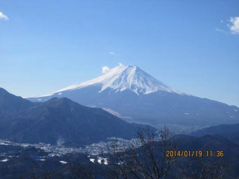 | この時期の山行で少し心配になることは積雪の程度と強い北風であろうか。立川駅を出発時、雪の「ゆ」の字も無かったが上野原駅を通過したあたりから車窓の外は銀世界へと変っていった。 9:14初狩駅に到着、9:30山頂を目指し出発、道路は雪に覆われているがそう深くはない。登山道は男坂、女坂、沢コースと3ルートあるが、積雪の状況から一番容易な沢コースで行くこととなった。沢コースに入り玉子岩を左に見て通過すると道に足跡が全くないので心細くなったが後ろから来た2人組が追い越して行ったので少し安堵した。 11:30 山頂に到着。これ程まで恵まれることはないであろう稀にみる好天だ。参加メンバーを見ればなるほどと即納得できる。「秀麗富岳十二景」の山らしく霊峰富士の眺望の素晴らしさには思わず絶句する。 昼食は時間の余裕もあり気温も低いのでバーナーで暖かい手作りランチでホット一息がつくこともできた。 12:20下山開始。少し下ると急勾配になり日陰の道は少し滑るのでアイゼンを装着するも落葉と赤土が靴底に絡まり歩き辛かったがその分体が温まり冷気が心地よく頬を撫でた。途中眼下にはリニア実験線、中央自動車道、都留市内が一望できた。 14:20 富士急田野倉駅に予定より若干早く無事到着した。 |