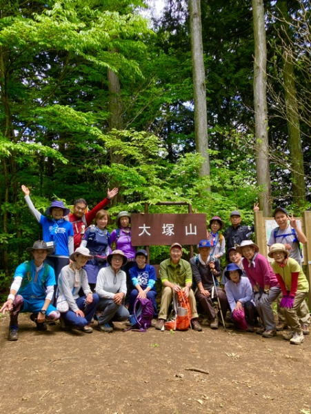 天候不順によ り1週間遅れで実施。古里駅に17名が集まり鉄五郎新道から広沢山、大塚山を目指す。過去に下りで歩いた記憶が有るが登った記憶は無い。過去の記録を観ると2011年秋に会長が計画していた。雲の間から太陽が顔を出すも気温は高くなく気持ち良い山行日和。万世橋を渡り多摩川南岸の車道を30分程歩き 登山道入口で最初のコンディション調整を行う。 |