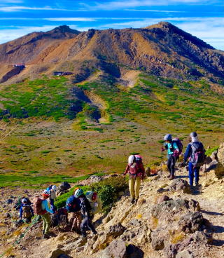 | 移動:JT高木(1泊) 宿泊地:五ノ池小屋(1泊2食付き、15,000円) 昭島駅南口ロータリー出発23日(火)6時30分 おんたけロープウェイ着 10時20分 飯森高原駅発 10時50分 一の又小屋 11時00分 女人堂 12時00分~(昼食) 石室山荘 13時40分 二の山荘 15時10分 白竜避難小屋 15時50分 五の池小屋 16時20分 ~宿泊地 24日(水) 五の池山荘 7時20分発 摩利支天乗越 7時50分 白竜避難小屋 8時05分 二の池山荘 8時45分 剣が峰分岐 9時00分 御嶽山頂上 9時25分 分岐 着 9時50分 石室山荘 10時25分 女人堂 11時35分 一の又小屋 12時25分 6合目中の湯登山口 13時20分 下山、JT高木合流 初日、ロープウェイからの景色は曇り空で、御嶽山頂上付近はガスって見えなかった。 飯森高原駅は、特に観光資源はなく、ほぼ登山客が利用しているような感じだった 登山道は、古の道として信仰者が歩いている為、多少荒れているが、歩きやすい 女人堂(八合目)近くなるとナナカマドが色付き初めていた ここで昼食をとり、急登へ向かう。この辺形からは、あちこちに石碑が祀られて信仰の山であったことが感じ取れた 石室山荘までは、火山帯特有の岩稜帯であり、歩きにくい上りで、苦戦する。今日は時間的に頂上へ向かうのは断念して、五の池小屋へと向かう。二の池小屋付近は、かつての噴火の痕跡で、出来たか砂漠平原が広がり、特殊な景観だ 出だしが遅かったので、五の池小屋には6時半近くになっていたが、さすが人気の小屋だけあり、とても素敵で雰囲気の良い山荘であった。そこでのテラスで飲んだビール(神泡)は最高で忘れられない時間を過ごすことが出来た。 二日目翌24日(水) 五の池小屋を7時20分出発、今日は快晴の中、御嶽山山頂を目指す 目の前にそびえる御嶽山剣が峰が青空にくっきりとそびえて胸の高鳴りを感じる 分岐で荷物をデポし、一人待っててもらい、8人で剣が峰を目指す 25分程で頂上へ到着、360度絶景が待っていた、来て良かったと感じた瞬間だ。 近くに噴火でお亡くなりになった方々の慰霊碑があり、黙とうする 全員ヘルメット着用で登ったんが、何が起こるか分からないので必要性を感じる ほぼ50分で分岐に戻り、下山開始する 下りは、火山岩で浮石も多く、転倒を心配したが、全員無事に中の湯駐車場へたどり着いた。 今回、天候に恵まれたが、宿泊初心者もいて、多少無理した山行の感もありましたが、参加者の体力、気力、準備と熱い思いがあったからこそ山行が成功したと思います。次、また、まだ見ぬ景色を求めて登りましょう。 今回、いろいろ役を担って頂いた方々に深く感謝申し上げます。 会計報告 【収入】 @30,000×9=270,000 キャンセル 1,000×2=2,000 収入合計 272,00 【支出】JT 50,000×2=100,000 JT宿泊費、食事代 10,000 高速代 4,490+4,590=9,080 五ノ池小屋宿泊費 15,000×9=135,000 ロープウェイ 1,400×9=12,600 支出合計 266,680 272,000−266,680=5,320 個人返金 @590×9=5,310 残金 10円 アルコ会計へ |