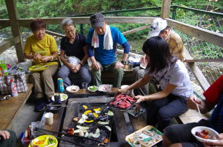 | 10時45分~GABI顧問へ感謝の集い mizさんの進行により、今期から会長職をバトンタッチすることになり、アルコの立ち上げから、25年間もの間、会をまとめ上げて来た功労と、感謝を込めて心づくしと、キョンキョン手作りのフラワーアレンジメントを贈呈しました。 9時50分 ~今期の新会員紹介(マエさん(前田)、nabe(渡辺),youさん(西)) 今回参加者は3名でしたが、後4名が入会届けされ、新会員7名となっております。山行でご一緒になりましたら声かけよろしくお願いいたします 10時00分 ~さあ~BBQ・野趣焼き会の開幕です A班・B班・C班の3班に分かれ、それぞれ焼担当マスターが、待ちこがれた様に、焼き始めました。前菜は野菜サラダ~玉こんにゃく~枝豆~アルコ農園ヨシゾーさん手作りの茹で落花生から始まり、串焼き鳥、骨付きソーセージ、エビ、牛カルビ、野菜たっぷり焼きそば、焼おにぎり、差入れのフルーツ・マシュマロ焼等 盛沢山の内容でした。 今回飲み物は、各自持参ということで、心配しましたが、それぞれ自分に合った飲み物を用意して頂き、助かりました。 12時15分~歌の時間 寺ちゃんと(ウクレレ)、ともちゃん(ウクレレ)、ふるふる(ウクレレ)、のんちゃん(オカリナ) 4名のメンバーのリード演奏により、全員で、ふるさと・四季の歌等を大合唱し、渓谷には爽やかな歌声が流れました。 13時10分 ~中締め nama-chanによると、熊に遭遇して助かる方法は、誰にも知らせずそーっと一人で消えることだそうです。確かにワーワー騒ぎ立てると熊も興奮するかもしれません 人付き合いも一緒かもしれませんね nama-chan貴重な話し、あり がとうございました。 13時20分 ~集合写真 いつもの場所で。ほろ酔い顔でいい写真でした。 13時30分 ~後片付け ~解散 毎年、お借りしている場所、清掃・片付けは念入りに行いました。来年もよろしくお願いいたしますとオーナーへ挨拶。 ※反省点 ・各班で、焼担当者による焼ペースがバラバラだった為、終了時間がそろわず、若干早く終わることになり、去年の反省点が生かされなかった感がありました。もう少しゆっくりしても良かったかもしれません 来年は、コーヒーかお茶でも飲んでから解散しましょう ・ウォ―キングコースは、秋のおとづれを感じる素敵なコースなのでもう少し参加者を増やすようPRしていきます。 ・BBQメニューも、広く会員の希望、要望、アイデアを募り、食材を揃えたいと思いますので、事あるごとにお聞かせください 以上です。運営委員会おいても、反省会を行い、来年に備えたいと思います。これで今夏のイベントは終了して、秋の山行へと入りますので、会員の皆様の参加を心よりお待ちしております 会計報告 収入 会費2,000円×34人=68,000円 支出 落合キャンプ場支払い 26,260 食材費 37,037 進物代 1,296 雑品及びコピー代 1,348 支払合計 65,941円 収入68,000円-支出65,941円=2,059円 残金 2,059円はアルコ会計に入金させていただきます |