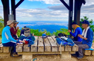 日の出山山頂の東屋に陣取り昼食 ここからの眺望は秀逸!! |